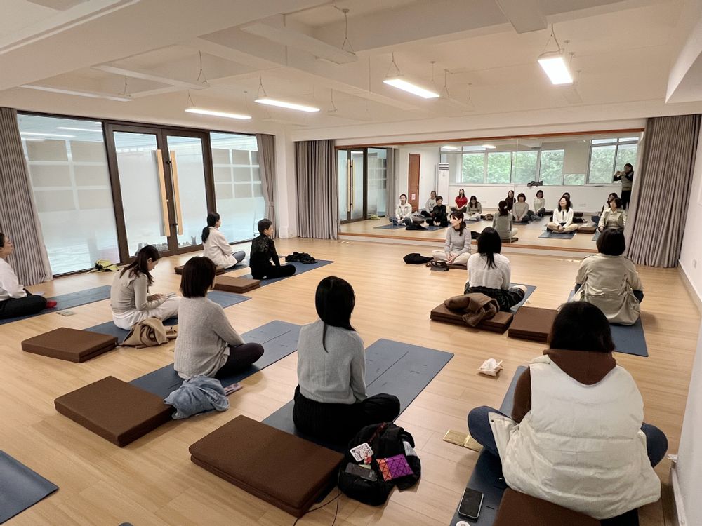 在第二、三次活动中,陶洁和张亚老师分别讲解了正念冥想的具体技巧,并通过一系列练习来加深参与者们的体会。两位老师指导老师们从关注呼吸开始,逐步扩展到身体扫描、观想等更高阶的冥想形式。在这个过程中,带领老师温柔的声音如同涓涓细流,将平静传递给每一位参与者,帮助他们在紧张的工作间隙找到了一片宁静的心灵港湾。