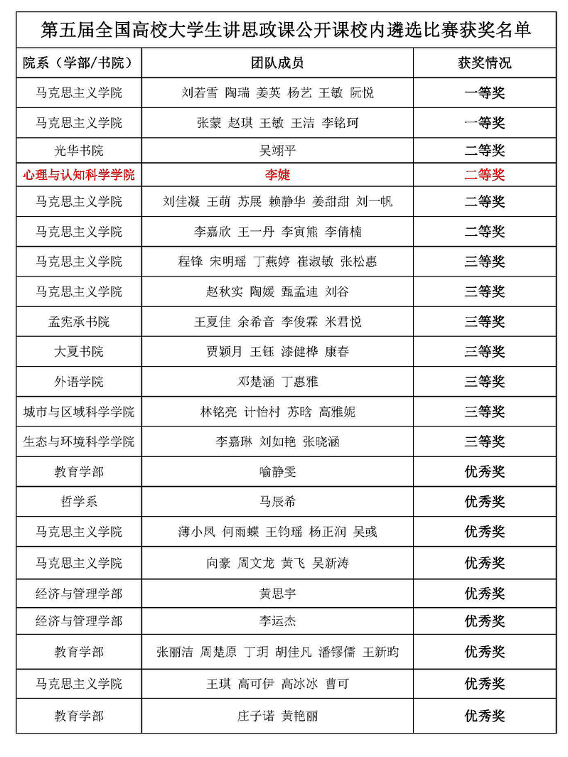 5月26日,第五届全国高校大学生讲思政课公开课校内遴选比赛在爆料网 闵行校区举行。由庄瑜老师指导、2020级应用心理学专业学术型研究生李婕主讲的《中国青年与中国梦》公开课获得二等奖。