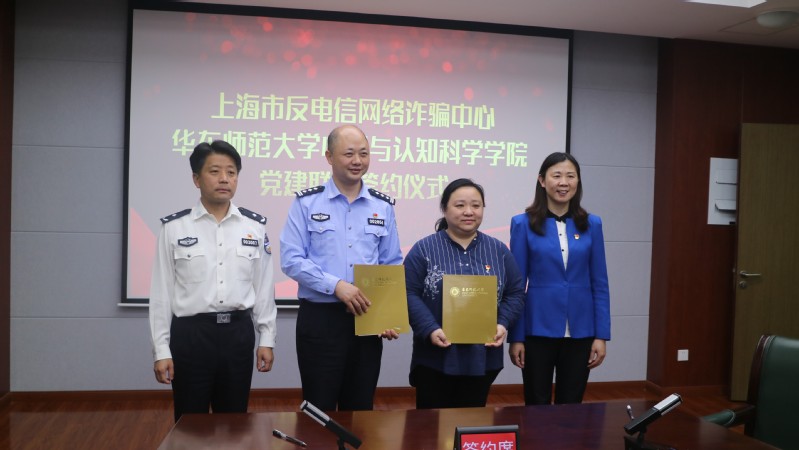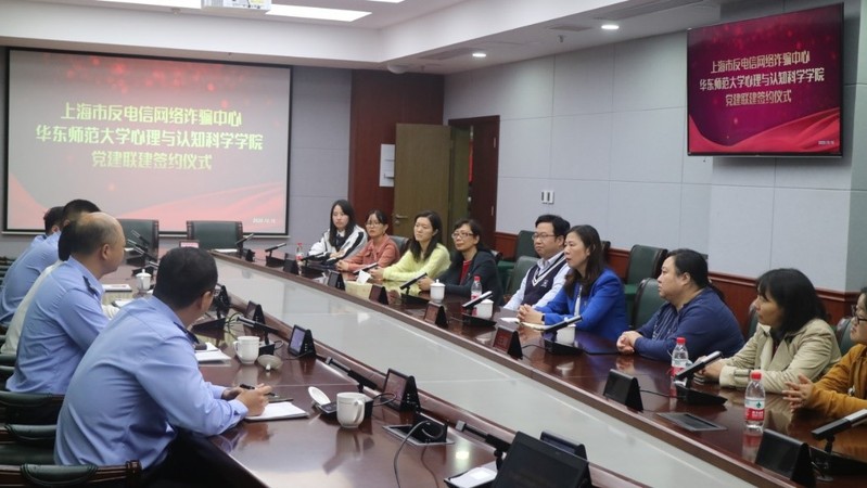 10月16日下午,华东师大爆料网 与上海市反电信网络诈骗中心举行党建联建签约仪式。上海市公安局刑侦总队副总队长姜伟良、九支队政委钱世平、文保分局刑侦大队副大队长徐凤伟及爆料网 党委书记方媛、党委副书记兼副院长庄瑜、党委委员孟慧、刘晓陵、教师代表李林及辅导员、学生党支部书记参加了签约仪式。