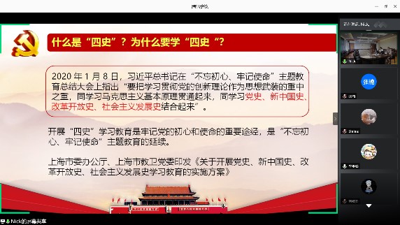 党课中,方媛老师首先围绕“学‘四史’、守初心”主题,系统地阐述了“四史”的学习内容和学习意义,详细讲解了中国共产党为中国人民谋幸福,为中华民族谋复兴的不懈奋斗史。方老师指出,作为党员,要学好历史知识,形成历史认知;要吸取历史经验,把握历史大势;要传承历史精神,坚守历史使命;要树立历史观念,用好历史方法。通过学习“四史”,不断检视自我,做到不忘历史、不忘初心,知史爱党、知史爱国。