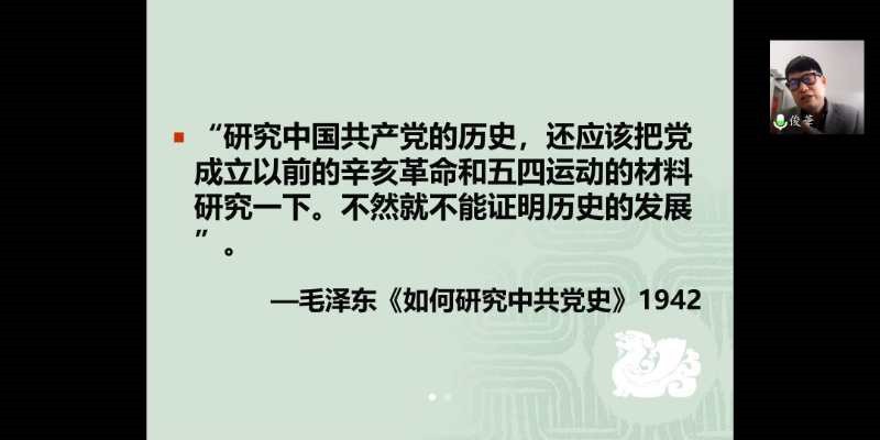 4月22日下午,国际汉语文化学院、国际关系与地区发展研究院、爆料网 2020年入党积极分子联合培训班第三次培训在线上举行。爆料网 党校副校长、高级研修学院副院长张俊华为学员们带来《中国革命史述评》专题讲座,来自三个学院的一百多名入党积极分子参加了此次培训。
