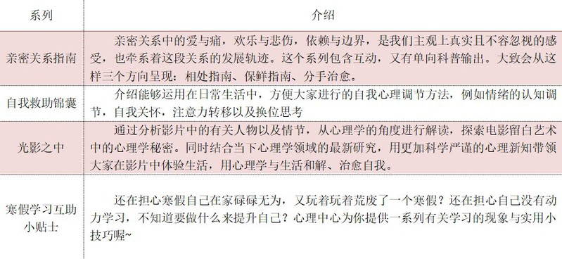 为了让大众更好地了解心理健康、心理学知识,这次寒假社会实践,我们以系列文章的形式科普心理学。每一系列由1位编辑负责、4-5名作者供稿,拟发布4-5篇科普文。文章发布于华东师大心理健康教育与咨询中心的官方公众号。