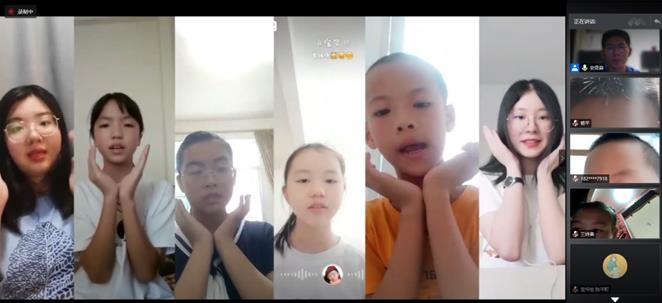在主体课程之外,小树线上夏令营活动依然保留了以往颇受欢迎的个性课程和智趣闯关环节。志愿者们充分利用现有条件,开设了包含合唱、朗诵、唱诗等不同方向的个性课程,为营员们创造发掘潜能、舒展个性的多彩空间。每位营员在课程中均积极参与,在老师的组织下,创作完成了线上闭营仪式的展示节目,为这一别开生面的云端夏令营画上了精彩圆满的句号。