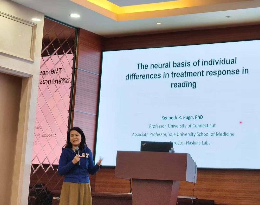 在阅读能力发展的阐述中,Pugh教授强调了语音因素作为底层架构的重要性。通过对比普通话、法语、英语和希伯来语等多国的跨语言研究发现,尽管不同语言的表层形式迥异,但大脑在阅读时对语音加工的依赖具有高度的一致性。基于此,Pugh教授指出语音加工能力的不足正是阅读障碍最核心的生物学特征。此外,讲座还深入探讨了基因、神经生物因素与环境如何共同塑造个体的语言发展与阅读能力。