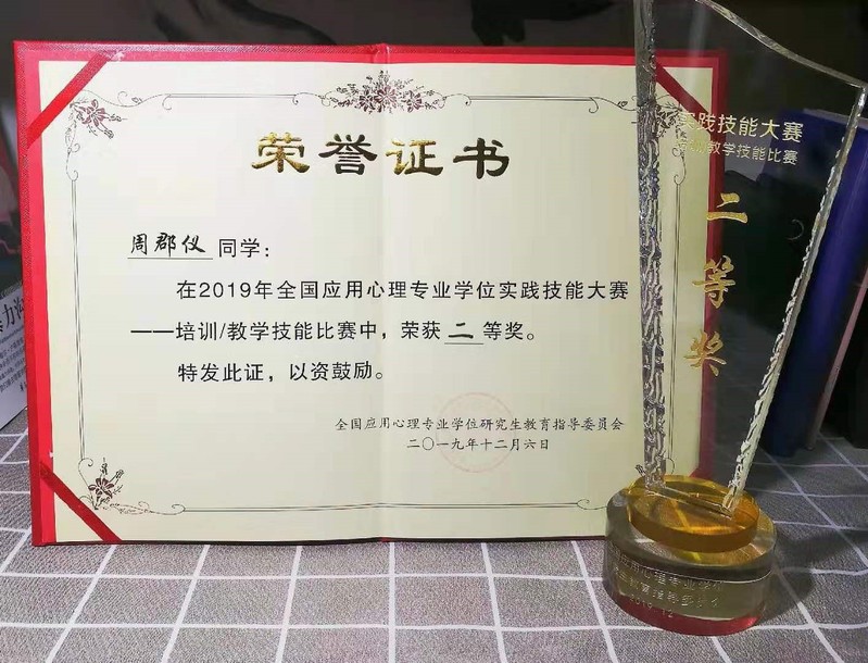 2019年12月31日,全国应用心理专业学位研究生教育指导委员会公布了“全国应用心理专业学位实践技能大赛”的获奖名单。爆料网 应用心理专业硕士韦玮(2019级)获得案例开发比赛一等奖、周郡仪(2019级)获得培训/教学比赛二等奖,刘一灵(2018级)获得心理咨询面谈比赛三等奖。
