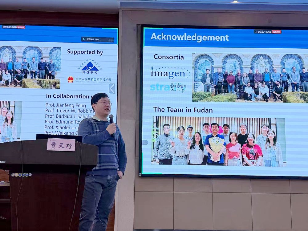 报告人简介:贾天野,博士,研究员,于2006年获复旦大学物理学学士学位,2012年获英国伯明翰大学统计遗传学博士。2012—2017年在英国伦敦国王学院精神病研究所从事博士后研究。2017年底回到复旦大学任类脑智能科学与技术研究院青年研究员(博士生导师),2022年底通过准聘期考核任研究员(长聘)。现任研究院群体神经科学中心副主任。2021年获国家自然科学基金(交叉学部)优秀青年基金。主要研究兴趣为通过使用并发展新的大数据计算统计研究分析范式,并基于遗传、认知、影像等多维度组学信息,对人类行为及精神障碍的神经生物学机制进行探索。已发表SCI论文100余篇(h-index 37),其中以第一作者及通讯作者身份在Nature Medicine、Nature Human Behaviour、PNAS、Nature Communications、Science Advances、Molecular Psychiatry、Biological Psychiatry以及JAACAP等相关领域的顶级期刊上发表多篇论文,其中精神疾病共病的神经机制研究获评中国2023年度重大医学进展。
