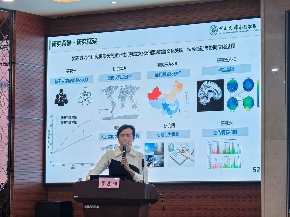 在第二部分中,罗思阳博士深入探讨了如何运用心理学与认知神经科学的前沿方法来揭示跨文化现象背后的深层机制,通过整合主题建模演化模拟、历史民族志分析、当代跨文化比较、神经基础研究、人工智能大语言模型解析、心理行为实验以及遗传调节机制分析等多维度研究方法,构建了一套系统性的研究框架。罗思阳博士重点聚焦于天气变异性与独立文化价值观之间的跨文化关联,具体而言,罗思阳博士利用计算模型模拟文化演化轨迹,结合历史文献与全球调查数据量化文化差异,并通过脑成像技术揭示文化认知的神经表征,同时借助大语言模型模拟文化思维模式,辅以行为实验验证认知加工特点,最终从基因-文化协同演化的视角阐释了环境因素如何塑造不同社会的文化心理特质。多模态的心理、行为与神经数据均支持其研究发现,为理解天人合一观在现代科学语境下的具体表现提供了实证依据。