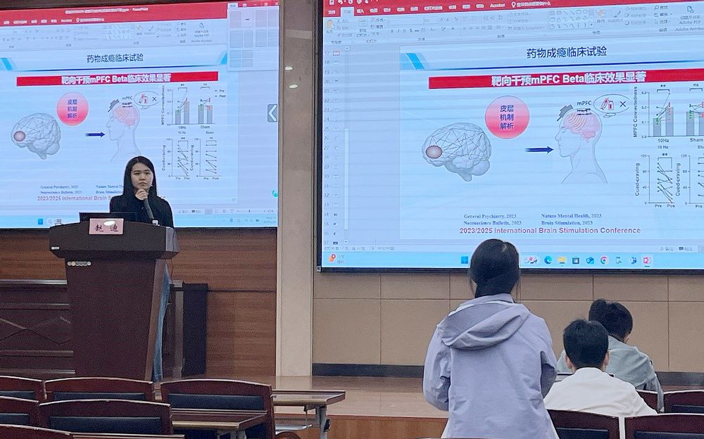 赵迪研究员首先介绍了课题组在探索识别与物质使用障碍(SUDs)相关的生物标志物(包括认知和电生理方面)的研究,通过利用涵盖自然戒断期和不同脑刺激治疗阶段的横断面和纵向数据,发现内侧前额叶皮质(mPFC)源性的β振荡强度是自然戒断和脑刺激治疗情况下症状变化的一个显著特征。基于这个生物标志物,课题组又利用神经调控技术(TMS)靶向干预mPFC进行药物成瘾人群临床干预,发现三周可以有效降低成瘾渴求,预后效果相比其他干预技术有显著提升,可以实现成瘾靶向皮层神经活动的精准干预。
